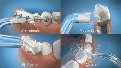 PureSmile su jetiyle diş aralarındaki plak ve kalıntıları diş ipinden daha derin temizler.